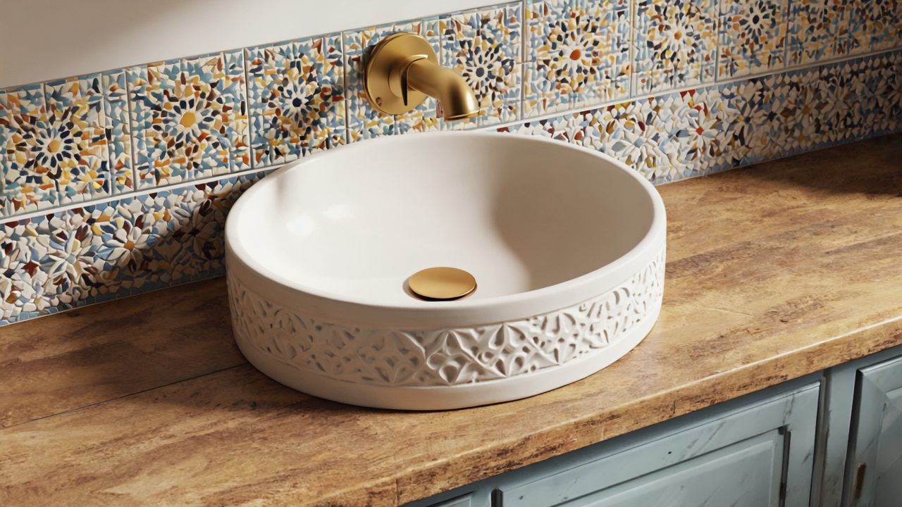 Hand Painted Moroccan ceramic Sink - Handcrafted Floral Vessel Sink